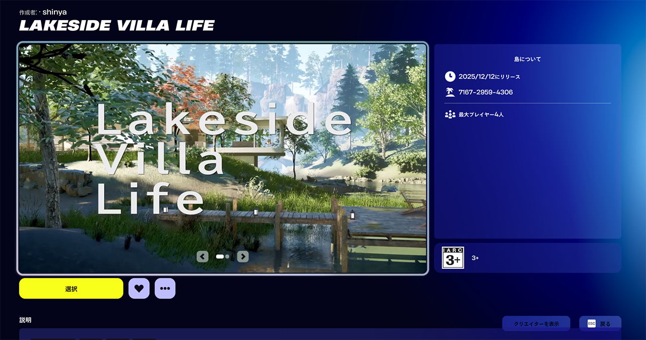 Unreal Editor For Fortnite(UEFN)を用いて制作した、湖畔の別荘をテーマにした建築メタバース作品です。